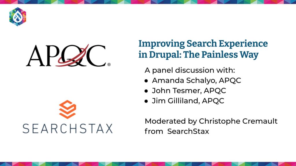 Listen to the APQC team share how they improved the search experience on their Drupal Website. The team discusses what they are getting with SearchStax...