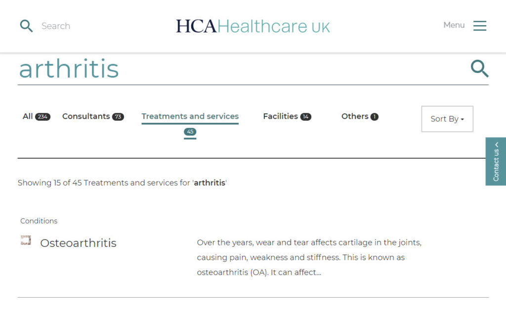 One key requirement was the ability to issue multi-angled federated searches across multiple websites and microsites and more than 9,000 web pages with a variety of cross-tabulated results. In the near future, HCA plans to develop contextualized search that will return results based on what facility is being accessed.