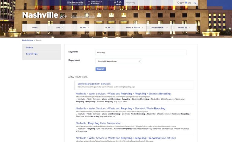 Search for “recycling” on the new Nashville.gov website