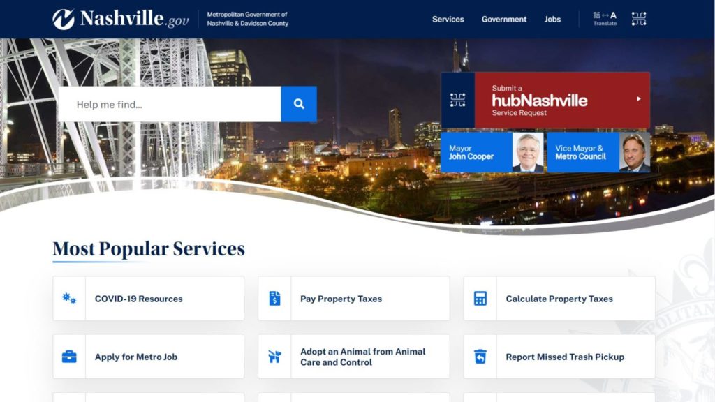 As one of America’s fastest growing cities, the Nashville area is home to more than 1.9 million people and 40,000 businesses. When citizens are looking for information and updates about the services they need, questions they have, issues that need attention and events they want to attend, they turn to the Nashville.gov website. Nashville.gov receives more than 30 million pageviews each year which makes the city’s website a critical resource to efficiently and effectively meet the needs of their citizens, provide superior support and improve transparency.