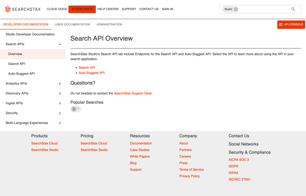 - SearchStax Site Search – Site Search handles content indexation and search as well as the API for the Search UI Components