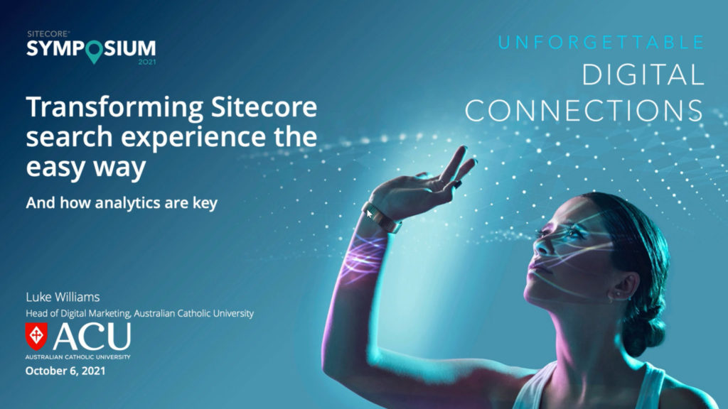 We are moderating a on-demand session titled Transforming the Sitecore Search Experience the Easy Way – and Why Analytics are Key with Luke Williams from Australian Catholic University (ACU). Luke is the Associate Director of Digital Experience at ACU and will share how he has taken ACU’s search game to the next level, how he leverages deep search analytics to tune the experience, and shares insights into the business drivers behind the project, and its implementation.