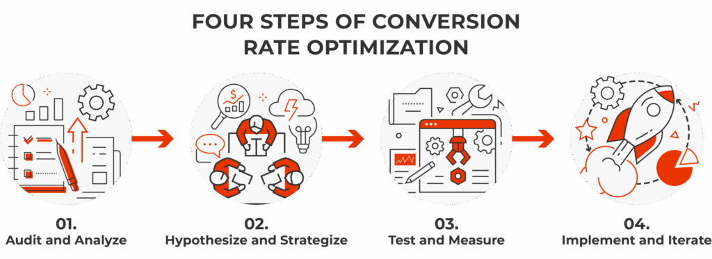 Following a step-by-step process is essential for organizing and testing your CRO efforts. Here are the four steps to follow: