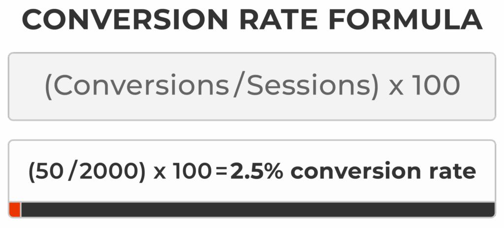 (Conversions ÷ Total Sessions) × 100 = Conversion Rate