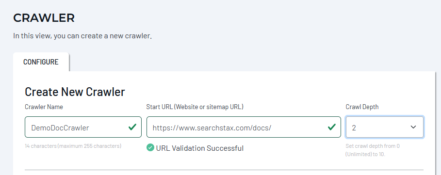 Each crawler in your SearchStax account must have a unique name. The names can be multi-word, mixed-case, and alphanumeric. Site Search will ignore case when checking for redundant names.