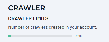 An Enterprise account may be authorized to create several concurrent crawlers. This limit is applied to the account, not to individual Site Search Apps. The progress bar on this screen shows the number of crawlers and the account limit.