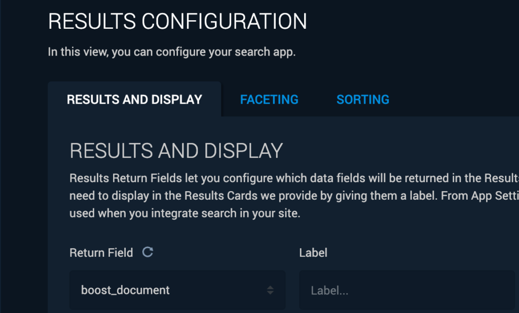 Configure the fields you want to be displayed and used for relevancy, following the information at Results and Display.