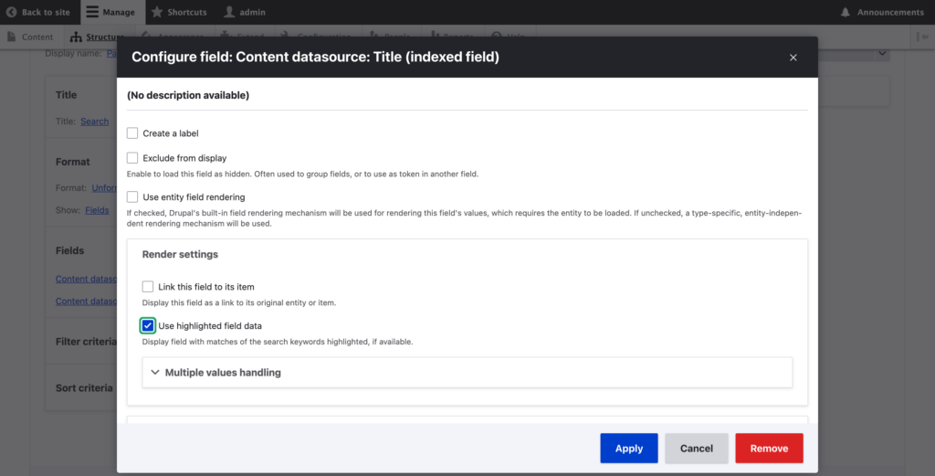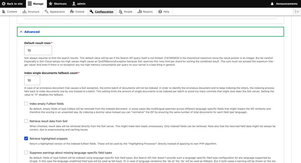 Step 5: Enable the server to retrieve highlighted snippets on Drupal