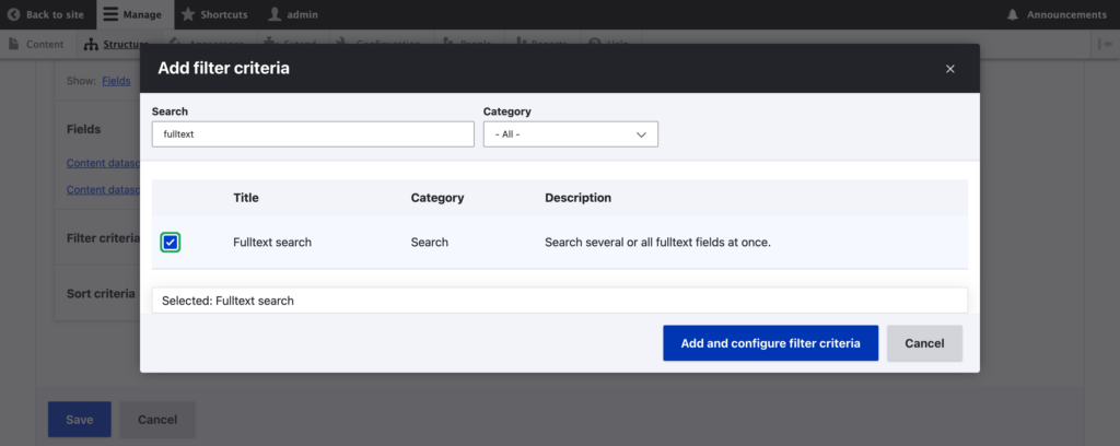| Make sure the fields you want to search by are of type “Fulltext”. |
