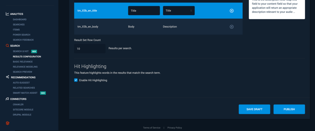 That’s it! You have now successfully enabled the Hit Highlighting feature on your Drupal Search page via SearchStax Site Search.