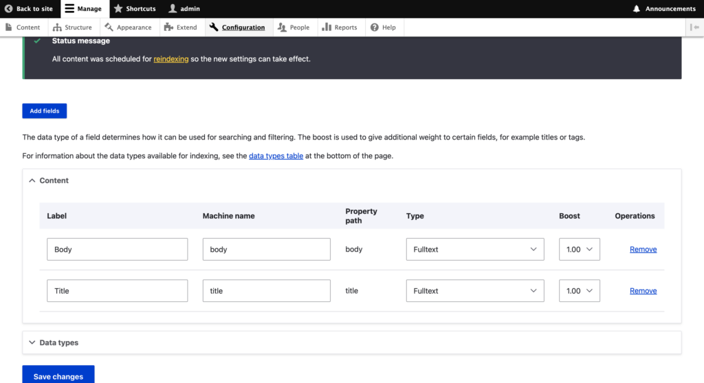 Then, re-index the data on Drupal by going to [your_index] > Queue all items for reindexing.