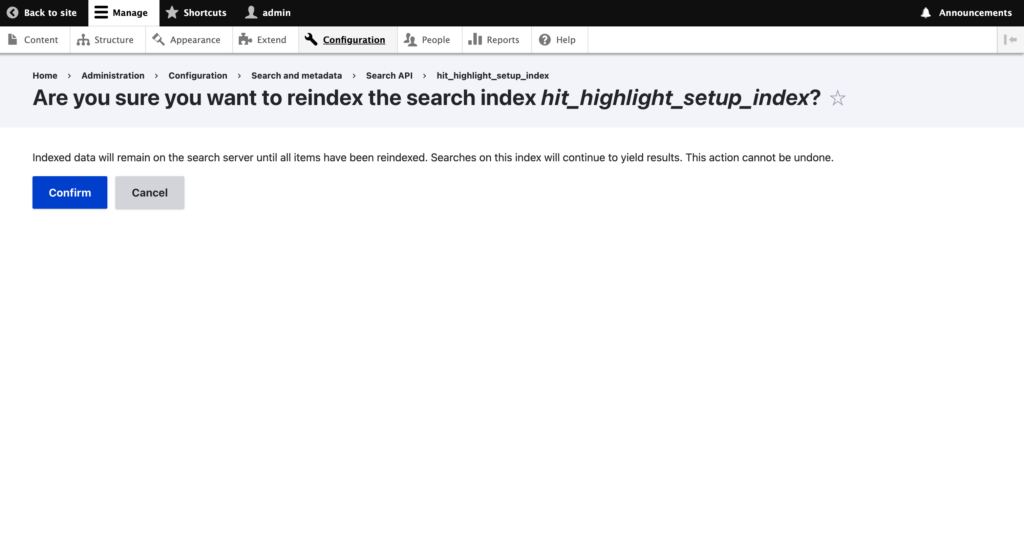 Click Confirm and then hit the Index now button for the indexing process to start immediately.