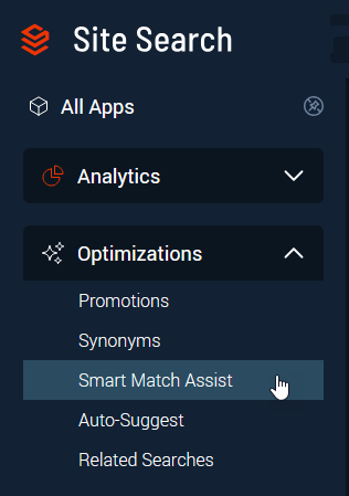 Smart Match Assist is available under Recommendations in Site Search’s left-side navigation pane.