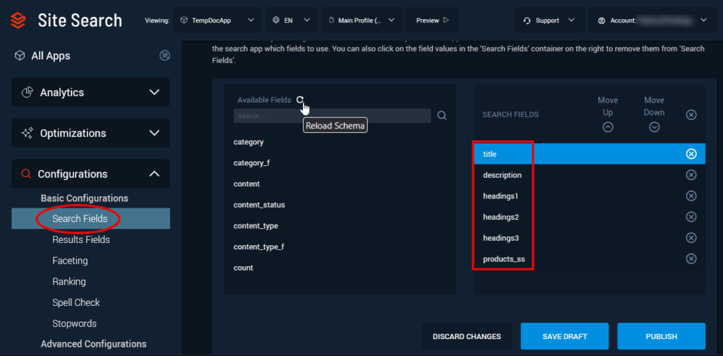 Navigate to Site Search > Configurations > Basic Configurations > Results Fields.